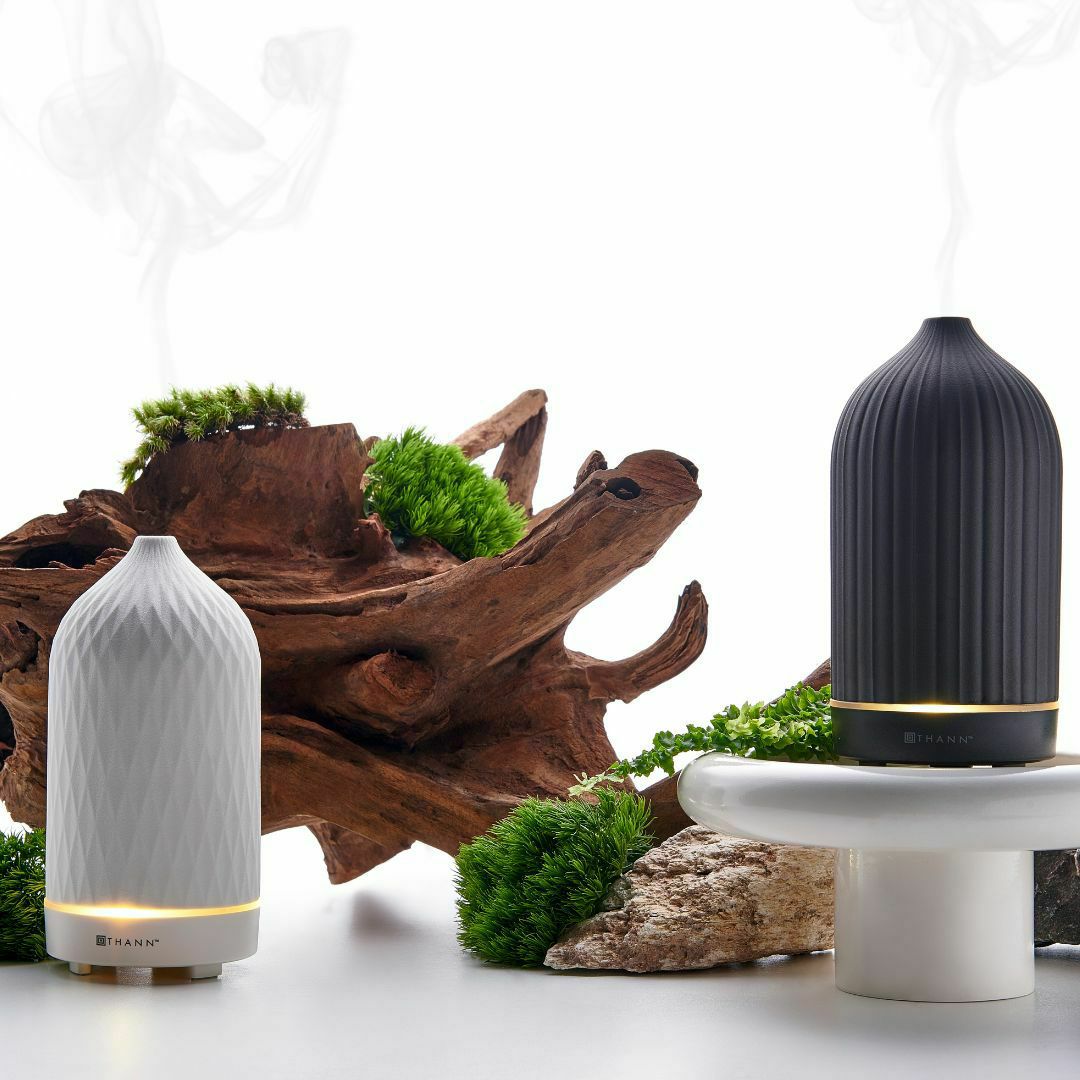 セラミックのマットな質感に刻まれた、美しいジオメトリーによるシンプルで上質なデザインは、どんなお部屋にも馴染み、洗練された空間を演出します。 毎秒250万回の超音波振動により、きめ細かな粒子のミストを拡散させ、天然の精油本来の自然な香りを手軽にお楽しみいただけます。 デザインバリエーションがございますので、お部屋の雰囲気にあわせてお選びいただけます。 ※こちらの商品は「BOX入り」となりますので、カート画面でラッピングの追加購入の必要はございません。