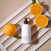 オレンジ、タンジェリン、ナツメグ、サンダルウッドが香る、みずみずしいお肌に導くボディミルク。保湿成分コメヌカ油配合でべたつかず、すっとお肌になじみ、いつまでも触れていたい柔らかなうるおい肌へ導きます。