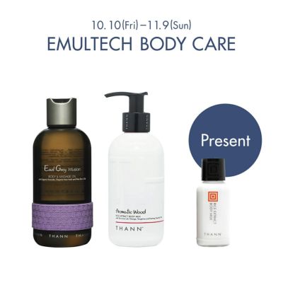 EMULTECH(エマルティック)とは、ボディミルクに含まれる水分に、マッサージオイルの油分が結合し乳化することにより、肌に最適な水分を補給し、より肌への吸収力と保湿力を高める技術です。 ボディミルクやボディバターにお好きなマッサージオイルを混ぜると、エマルティック*1テクノロジーで、肌に効率的に浸透*2し、保湿力を高めます。 濃密なうるおいとフレッシュな香りをお楽しみください。 *1 EMULTECH(エマルティック):乳化すること *2 角質層まで セットはお好きな香りの組み合わせでお選びいただけます。 その日の気分に合わせて香りを重ねることで、よりパーソナルなケアをお楽しみください。 今ならマッサージオイルとボディミルク、もしくはボディバターEBのセットに持ち運びにも便利なミニサイズのボディミルクをプレゼント!(ミニサイズの香りはお選びいただけません。) マッサージオイルは単体でバスタブに入れたり、ヘアオイルとしてもご使用いただけます。