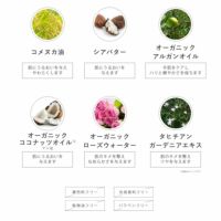 水、ジメチコン、トリ(カプリル酸/カプリン酸)グリセリル、ステアリン酸エチルヘキシル、ヤシ油、セタノール、オクテニルコハク酸デンプンAl、グリセリン、ダマスクバラ花水、シクロペンタシロキサン、ステアリン酸グリセリル、シア脂、セテアリルアルコール、コメヌカ油、ステアリルアルコール、ステアリン酸PEG-100、ステアリン酸PEG-20、カルボマー、グルコン酸Na、乳酸Na、アルガニアスピノサ核油、TEA、ステアリン酸PEG-75、プルット(カフィルライム)果皮油、レモングラス葉油、香料、BHT、ガーデニアタヒテンシス花エキス、セテス-20、ステアレス-20、カプリリルグリコール、フェニルトリメチコン、安息香酸アルキル(C12-15)、ジメチコノール、ジメチコンクロスポリマー、ソルビン酸K、クエン酸、フェノキシエタノール