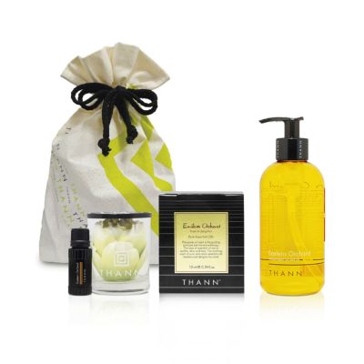 日本産のユズ、ネロリが香るフレッシュビターな香り《イースタンオーチャード》のエッセンシャルオイル10ml(ルームフレグランス)と、豊かな泡立ちと優しい洗い心地のシャワージェル(ボディソープ)のギフトセット。 お花をモチーフにしたポプリは、とても美しい仕上がりで贈り物にも最適です。 インバス、アウトバスともに心地よい落ち着きを与えてくれる香りをお楽しみいただけるセットとなっております。 【セット内容】 シャワージェル EO 320ml エッセンシャルオイルEO10ml THANNオリジナルコットン巾着L ※THANNオリジナル紙袋をご希望の方は別途こちらよりご注文ください。 ※ボトル・キャップの色・デザインが変更になる場合がございます。 あらかじめご了承くださいませ。