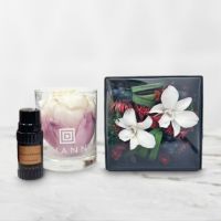 THANN × アンドプランツ コラボレーション限定、特別デザインのプリザーブドフラワーとエッセンシャルオイルのギフトセット。