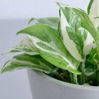 育てやすさと品種の多さから人気のポトスエンジョイは成長がゆっくりでコンパクトにまとまることが特徴です。 通常のポトスよりもスマートな葉姿で、もっとも美しいポトスとも言われています。 この商品の高さの目安は、 15~20cm です。