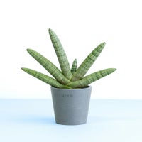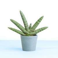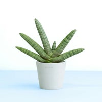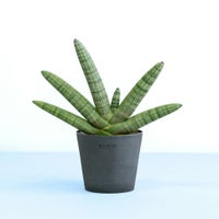 むちっとした棒状の葉が扇状に広がるユニークなフォルムが魅力のサンスベリア・ボンセレンシス。 インテリアにアートのようなアクセントを加えたい方におすすめの一鉢です。空気清浄効果が高く、乾燥に強い性質から、育てやすさも抜群。日当たりの良い窓辺に置くだけで、個性的な佇まいを楽しめます。 お世話が簡単なので、植物初心者や贈り物としても人気。和モダンやミニマルな空間とも相性がよく、暮らしに静かな存在感を添えてくれます。 ※一部の株に補修剤を使用している場合がありますが、生育には問題ありませんのでご安心ください。 この商品の高さの目安は、 20〜30cm です。