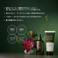 レモングラス、カフィルライムが香るノンシリコンバランシングシャンプーと、コメヌカ油と3種の植物油が髪にうるおいを与え、やわらかく、しなやかな、まとまりのよい美しい髪に導いてくれるコンディショナーのセット。旅行やジムに、持ち運びに便利な、ミニサイズのシャンプー&コンディショナーをプレゼントいたします。 頭皮をよくマッサージすることで血行が促され、すこやかな地肌に。 シャンプーの前に、頭皮と髪をお湯で予洗いしていただくと効果的です。