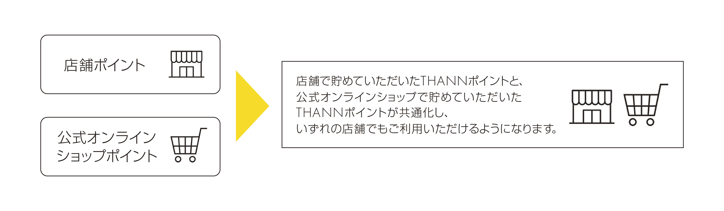 店舗で貯めていただいたTHANNポイントと、公式オンラインショップで貯めていただいたTHANNポイントを共通化し、THANN直営店舗、公式オンラインショップのいずれの店舗でもポイントを「貯める」「使う」ことが可能となります。