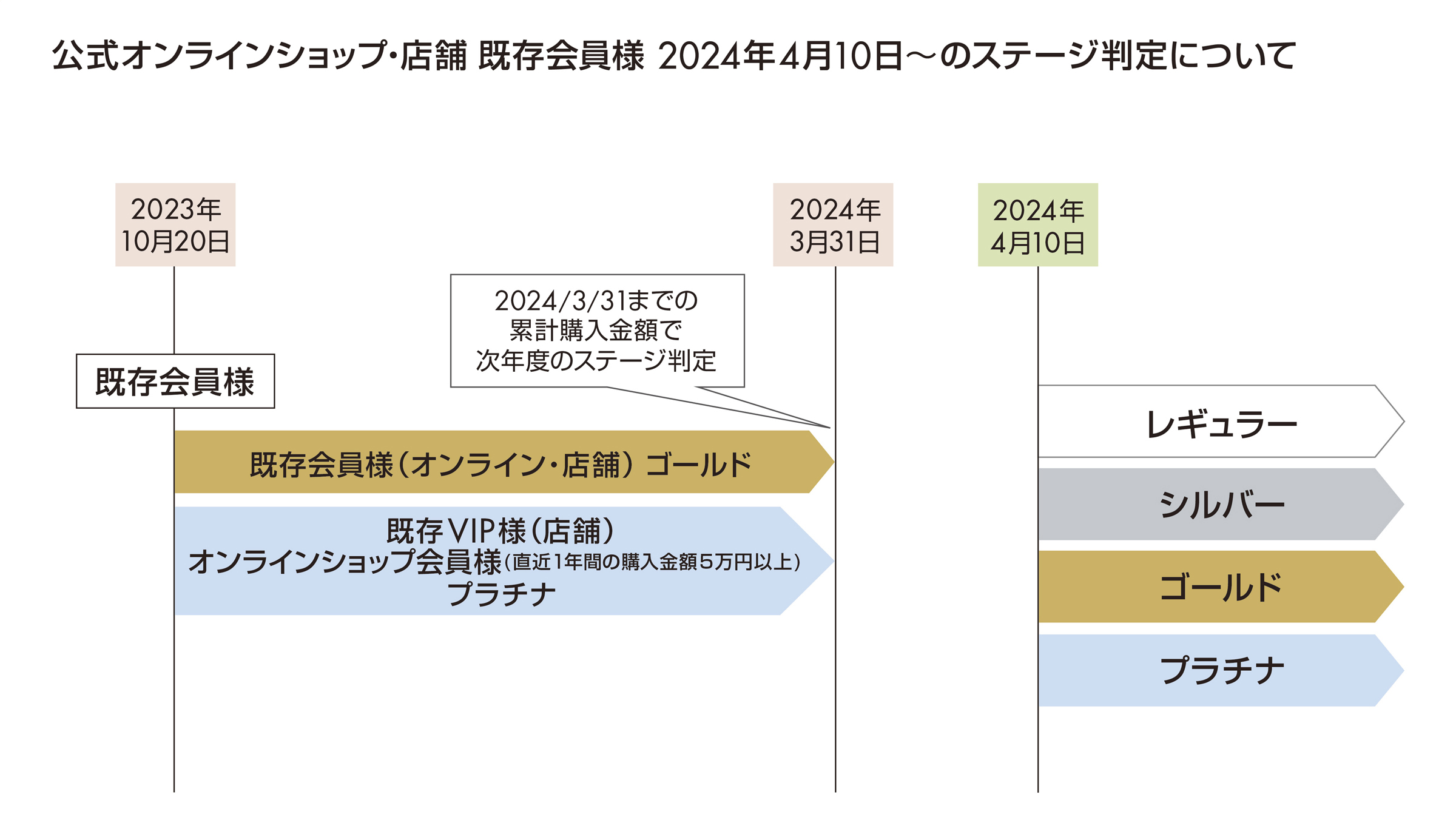 ステージ決定:上記期間の累計購入金額を元に、2024年4月10日(水)からのステージが決定いたします。