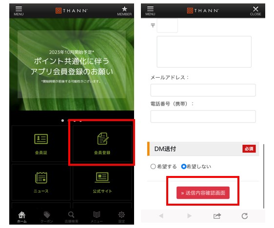 会員登録(メールアドレス登録)がお済みでない方は、THANN公式アプリTOP画面の「会員登録」より、情報をご入力の上、登録を完了いただきますようお願いいたします。