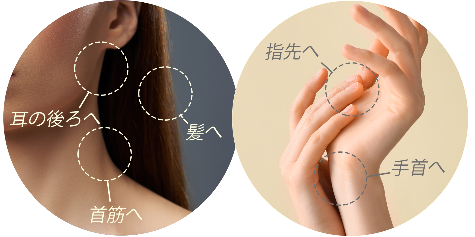 首筋、手首、耳の後ろにつけ、軽い香りでありながら